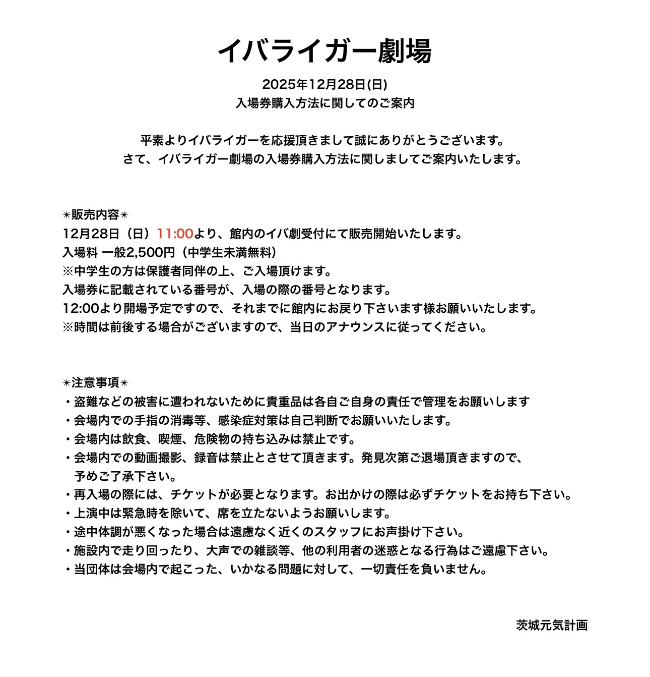 12月28日(日)イバライガー劇場